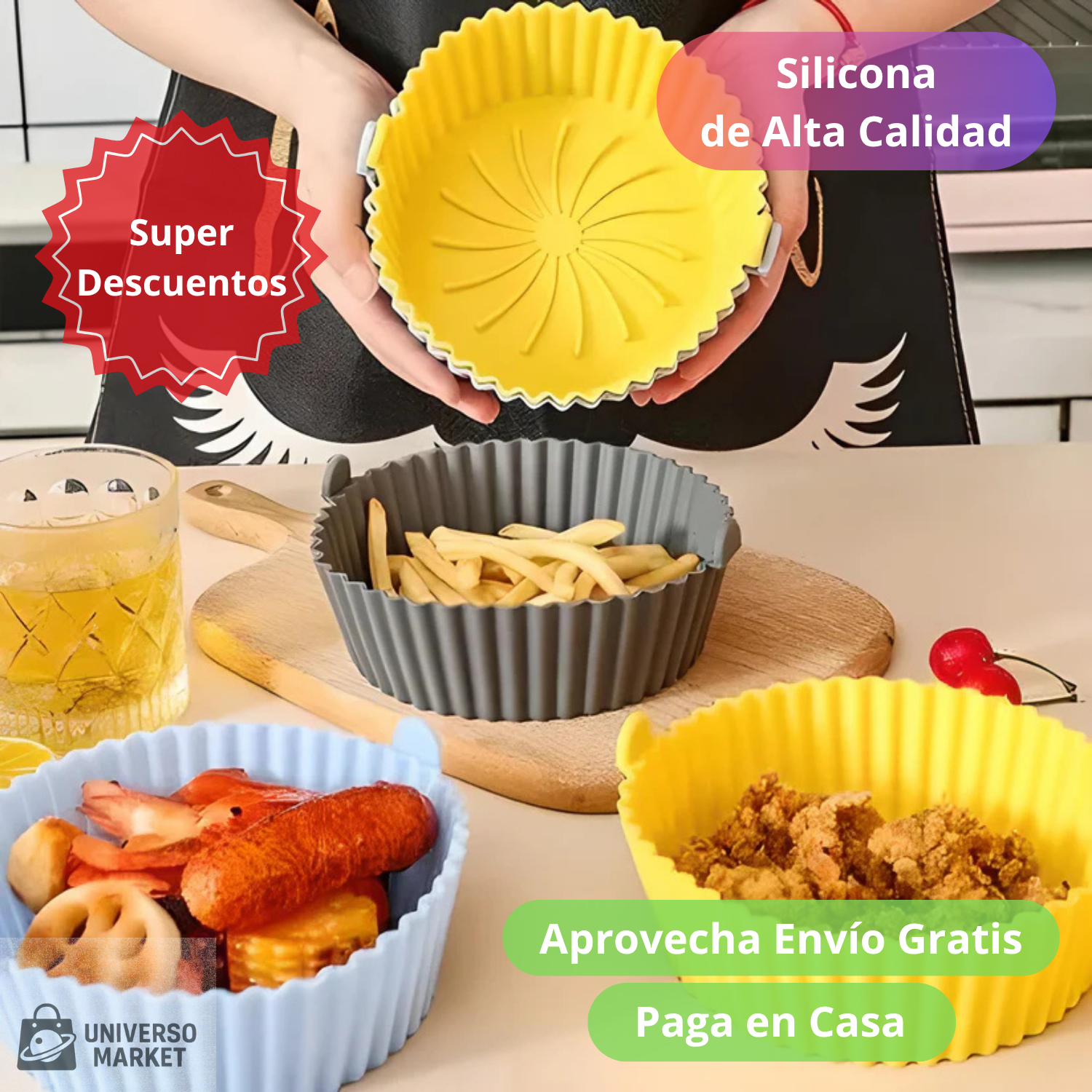 Imagina preparar tus platos favoritos sin ensuciar la freidora y con moldes coloridos y funcionales que además decoran tu cocina.